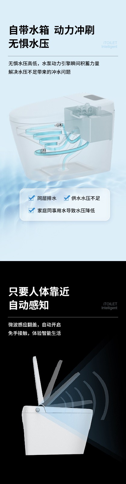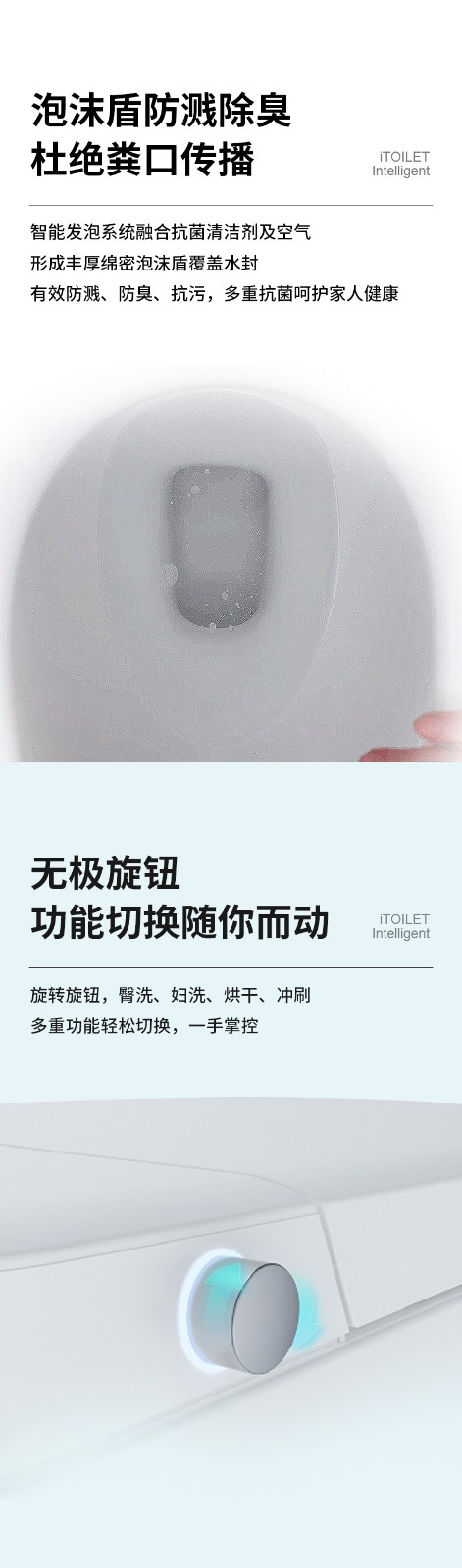 3、主要功能:AI語(yǔ)音控制(可選)、著座感應(yīng)、腳感翻蓋/翻圈/沖刷(可選)、停電(接USB)沖刷、暖風(fēng)烘干、無(wú)線遙控、凈味除臭、